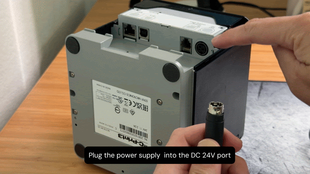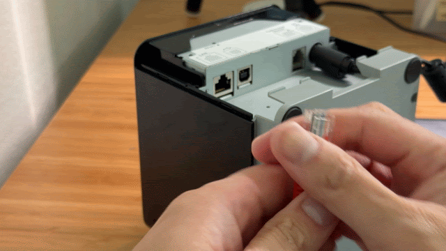 - Lastly, if you are using a cash drawer with the printer, please connect the provided cable from the cash drawer to the receipt printer as shown.
