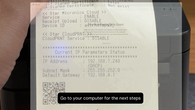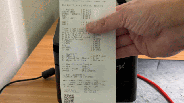- If you try to get the printer's IP address and the receipt paper prints with 0.0.0.0. it means the printer isn't connected to the network or the network port isn't connected. Please review that the Ethernet cable from your Router to the Printer is connected.