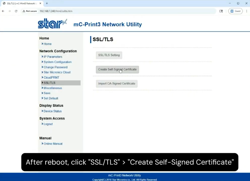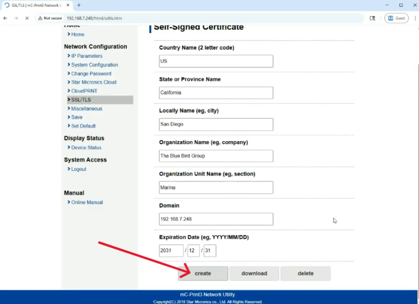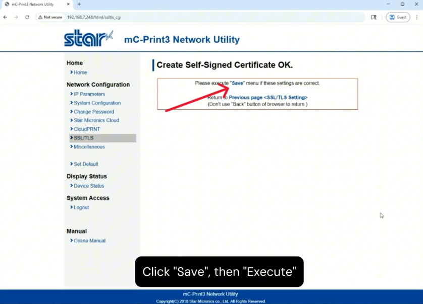 - When presented with Create Self-Signed Certificate OK, make sure to click Save.