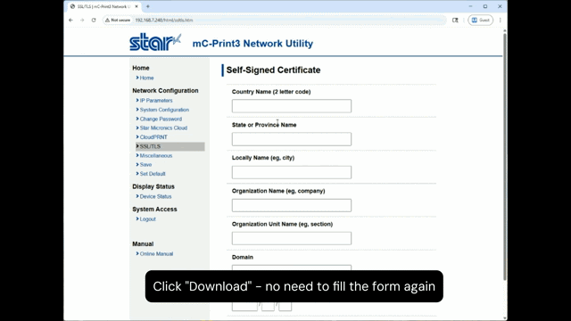 - Rename the certificate so when you store it for future use you know to which printer it belongs.