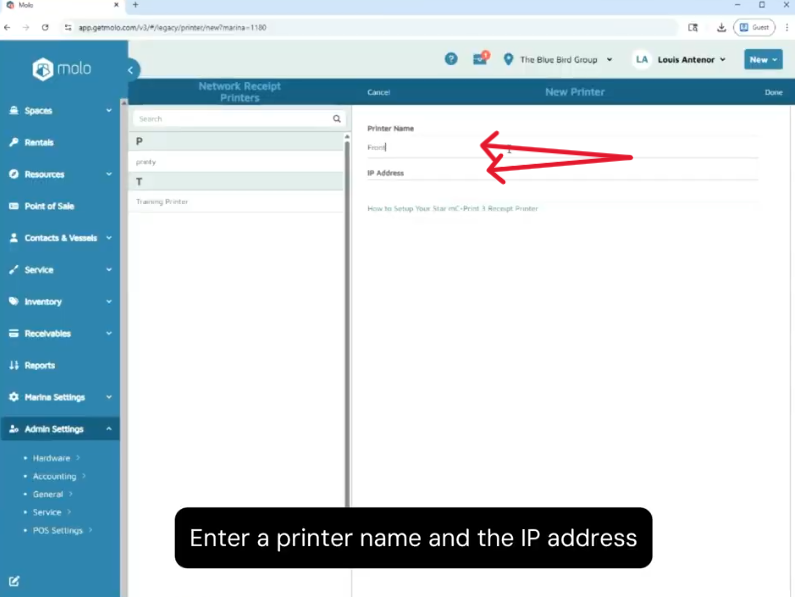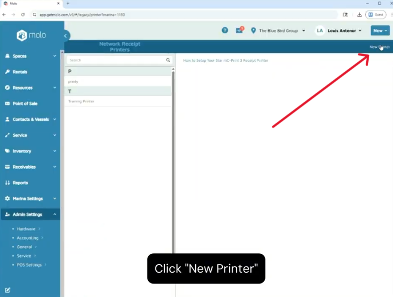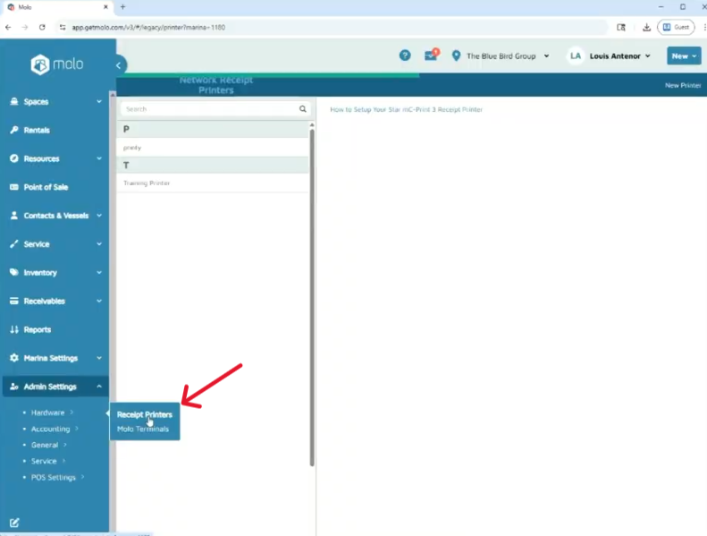 - Go to Admin Settings --> Admin --> Receipt Printers.