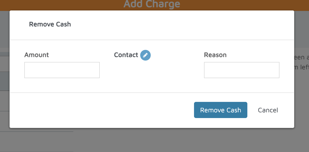 - A pop-up will appear where you must enter the Amount and the Reason for removing the cash.