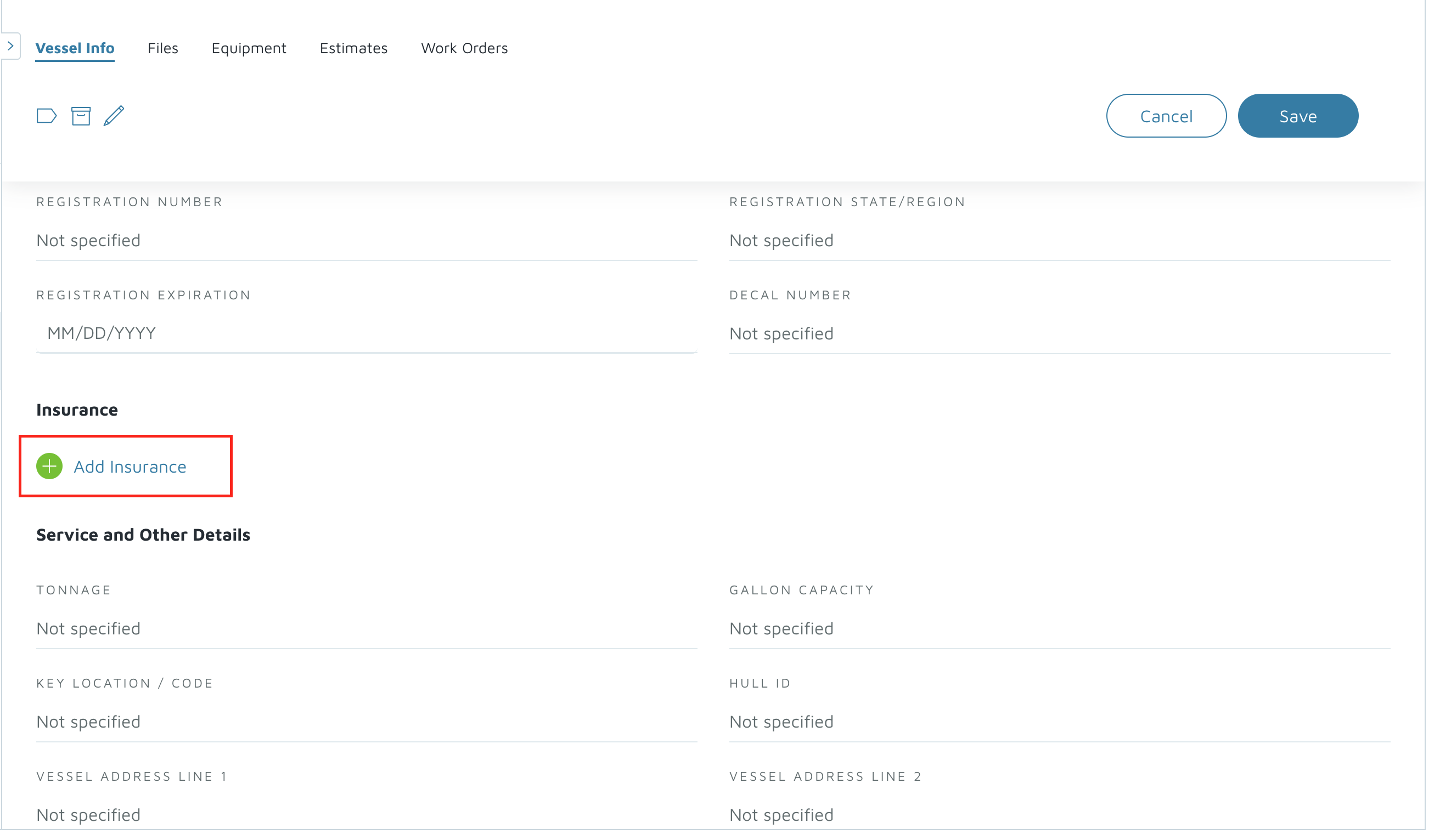 - In addition to the typed information, you can store a scanned or downloaded version of the Vessel Insurance by selecting the Files Tab and then Upload File.