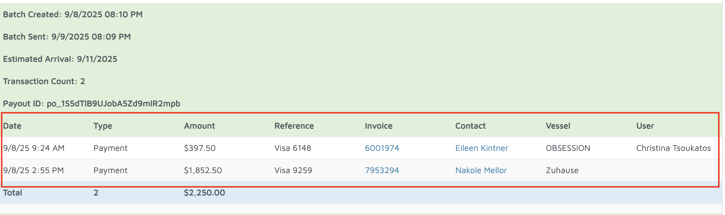 - Inspect individual transactions— expand a batch to see each transaction’s details: