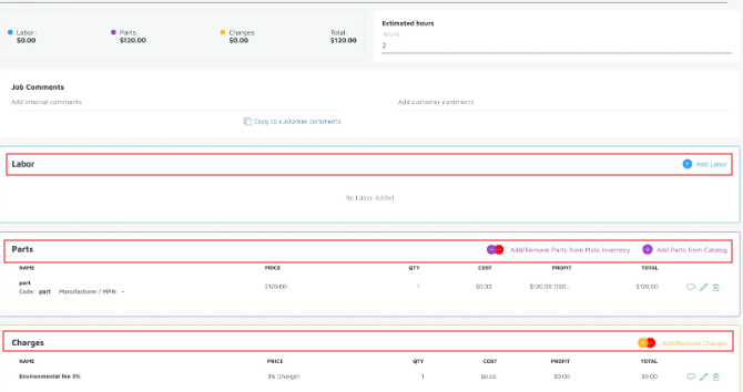 Prerequisite: Ensure that all labor, parts, and charges are created and assigned a job category in the inventory.