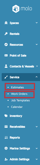 - On the left menu, navigate to Services > Estimate or Work Order.