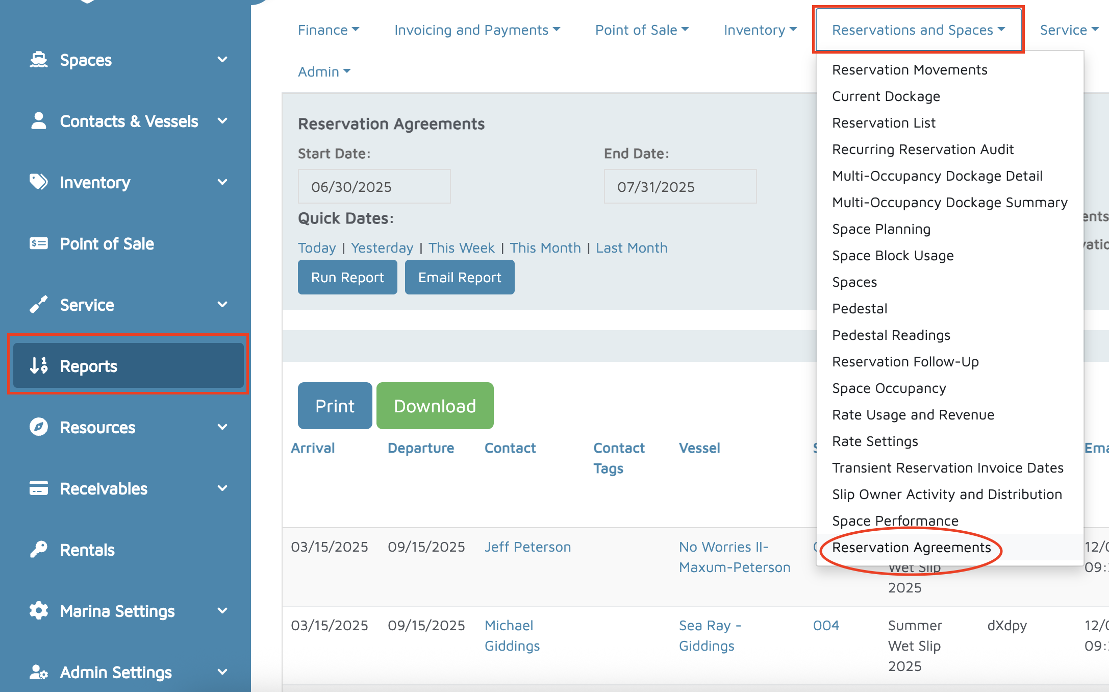 - "Where can I see a list of reservations and if the terms were accepted?"