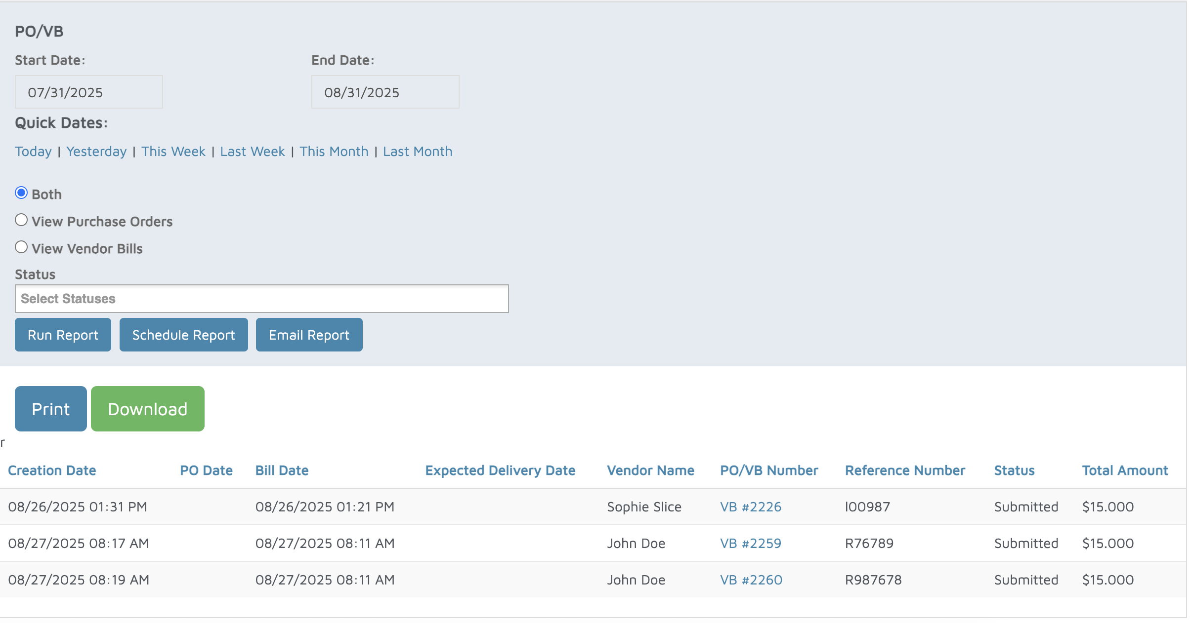 Verification: The report will displace all vendor bills and purchase orders.