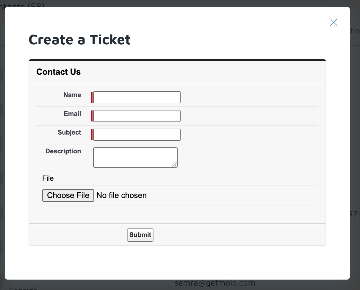 - Click Submit to submit your request to Molo Support.