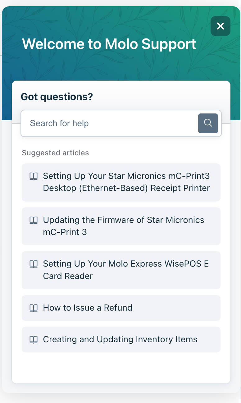 - "How do I access Molo’s Support Portal to submit a ticket or find help articles?"