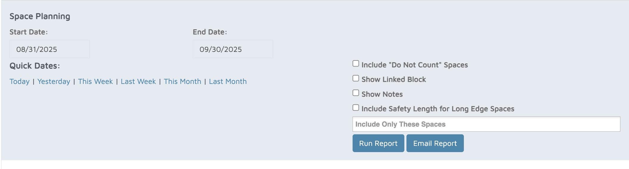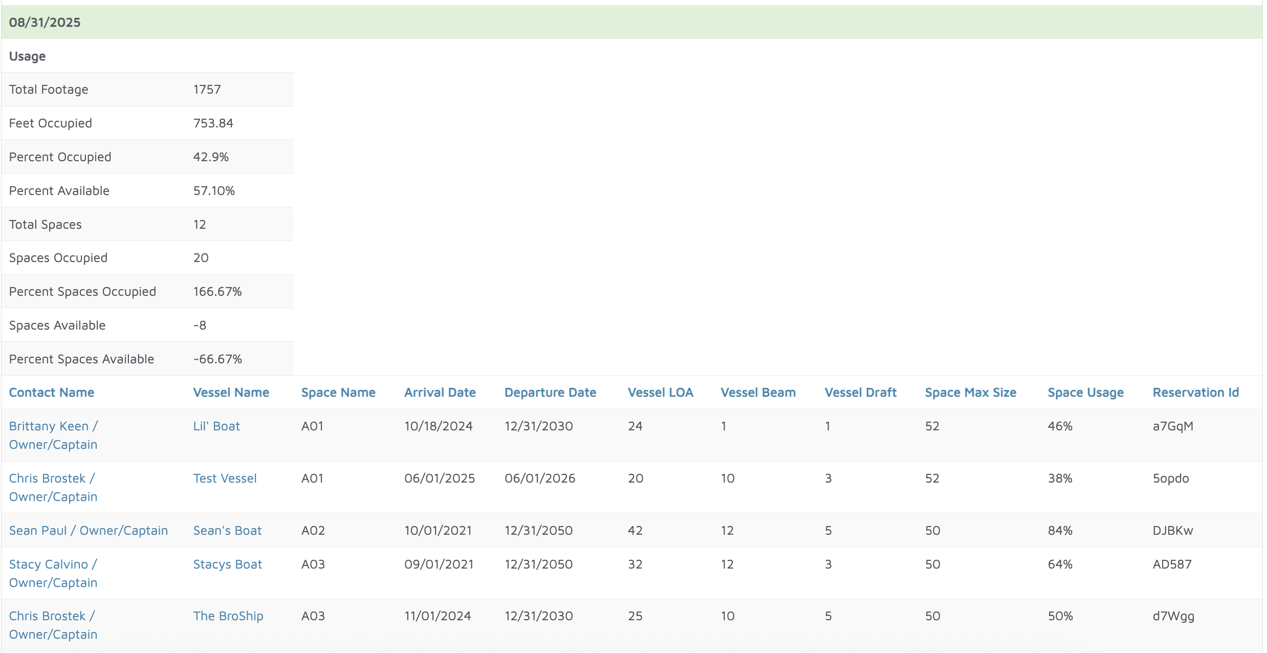 Verification: The report will populate all reservations within each space and how many feet were occupied.