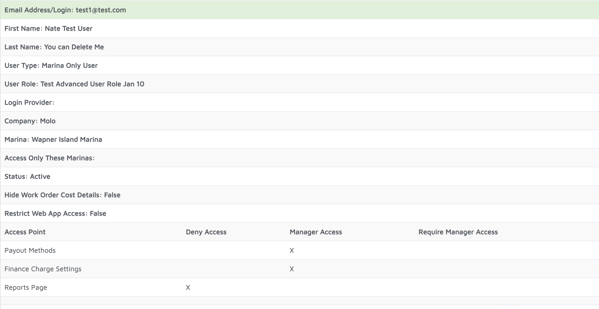 - Access points where permissions are granted or denied, including Manager access